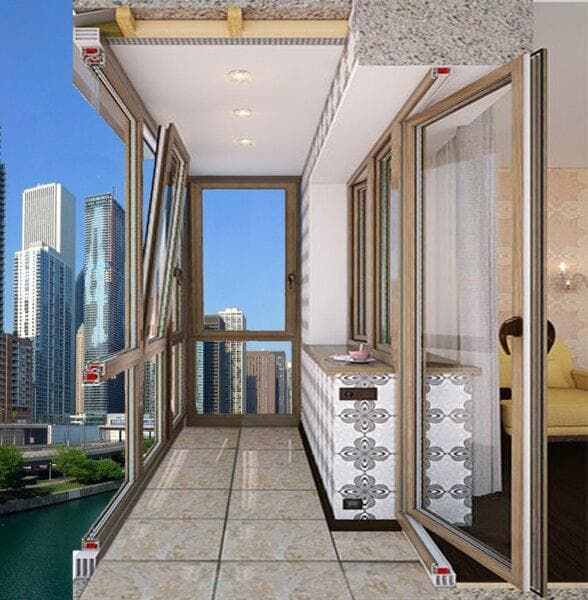 Первым последствием разницы в прочности оснований обычно всплывает остекление. Так, если возможности выбора оконных конструкций для лоджии практически безграничны, то перед остеклением балкона нужно хорошо подумать, какой вес будет приемлем. Для перестраховки многие останавливаются на более лёгких алюминиевых профилях.