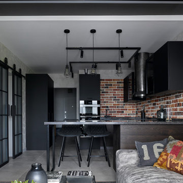 Черная кухня в стиле лофт