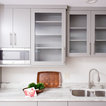 Обычно в кухонной зоне используется кафель или стеновые панели. Они будут отличаться от основного фона гостиной.