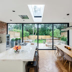 Остальное пространство в доме занимает кухня, гостиная и спальное место. Для того чтобы грамотно разграничить зоны в доме, применяется множество дизайнерских хитростей и творческих приёмов. Кухонную зону, столовую и гостиную обычно визуально отделяют друг от друга.