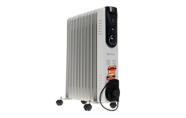 Эффективный масляный прибор, оперативно и равномерно прогревающий комнату. Благодаря 12-ти секциям прибора и встроенному тепловентилятору обеспечивается малый расход электроэнергии и отличный прогрев. Рекомендуется для площадей до 28-ми квадратных метров. Обогреватель оснащен трехступенчатой регулировкой, индикатором нагрева и колесами, позволяющими перемещать устройство. Производитель уверяет, что утечка масла из радиатора невозможна, что достигается использованием технологии STEEL SAFETY. А пользователи отмечают, что прибор изготовлен из качественных материалов, поэтому служит длительный срок. Также владельцы хвалебно отзываются о мощности прибора, но сетуют на его большой вес.