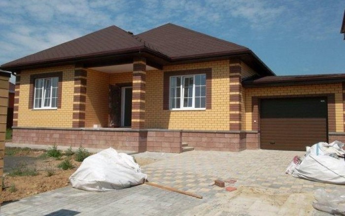 Кирпичные одноэтажные дома теплые, долговечные и надежные – не на одно поколение. Кроме классического керамического кирпича используется еще силикатный. Вместо обожженной глины в нем – песок и известь, а это дает новые фактуры и расцветки.