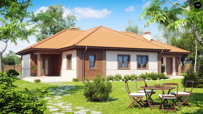 Одноэтажные дома куда более разнообразны, чем кажется на первый взгляд: от оформления до планировки. Даже среди типовых проектов найдется много интересных вариантов, не говоря уже об индивидуальных. Рассмотрим несколько распространенных поближе!