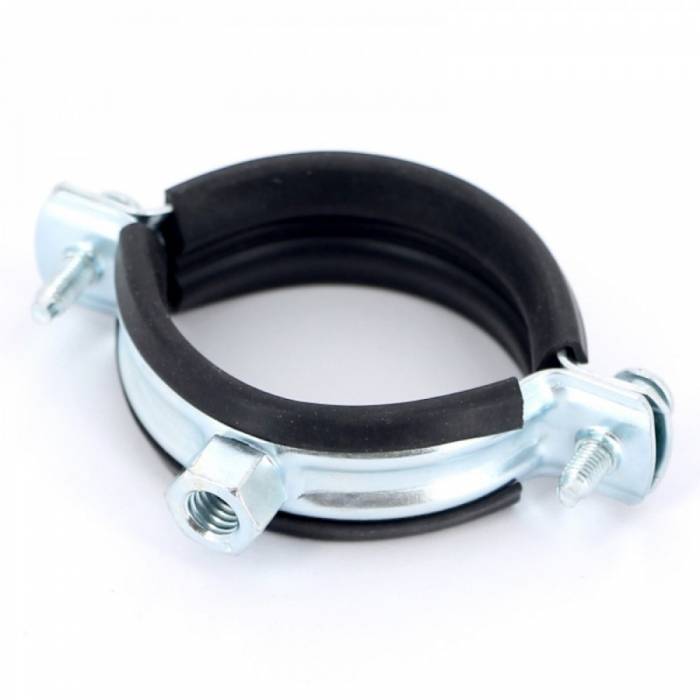 - Наличие резиновой прокладки. Резина существенно снижает шум, вибрацию и защищает поверхность трубы от деформации. Для чугунных труб наличие резиновой прокладки не существенно. Главное — плотно стянуть хомут. За счет большого веса и резиновой прокладки может образоваться дополнительная вибрация.