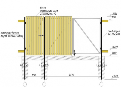 - размеры ворот/калитки задаются с учетом высоты забора;