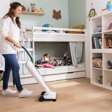 Для пола подойдет экологичное покрытие, которое не скользит, не накапливает бактерии и прост в уходе: ламинат, пробка или паркет.