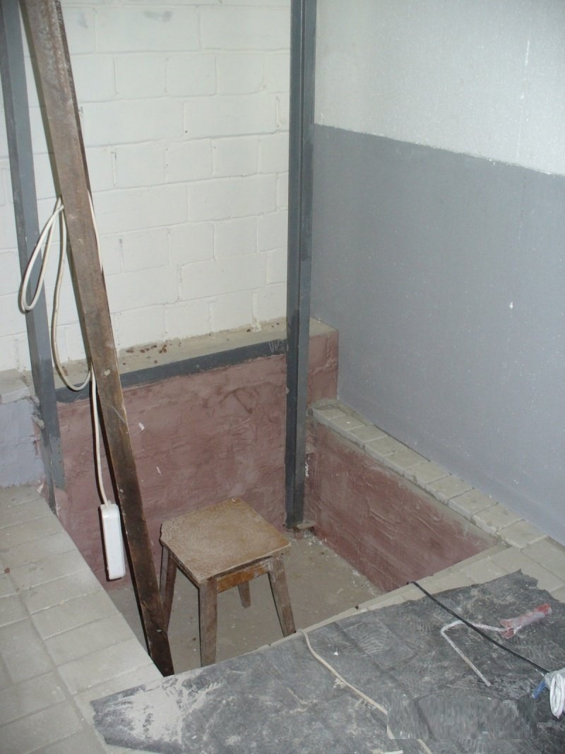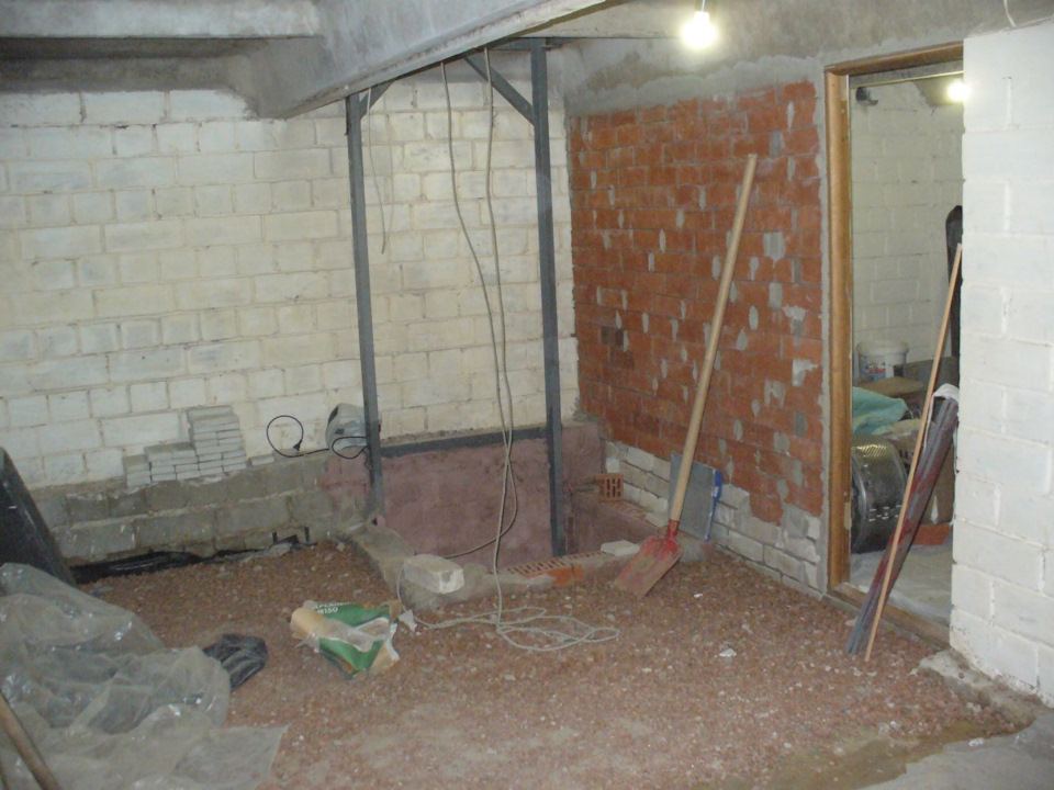 В помещении, где яма было относительно сухо. Сырели только стены под воротами. С него и начал. Побелил, покрасил, провел проводку, трап и т.д. Перешел в соседнее помещение-погреб. Поставил стенку-отделил от половины подвала дверью. Провел трубы вентиляции. Поставил обогреватель, подсушить потолок перед покраской и перешел в половину подвала, где будет лифт. Выкопал приямок для платформы лифта. И на пару недель пропал из подвала.