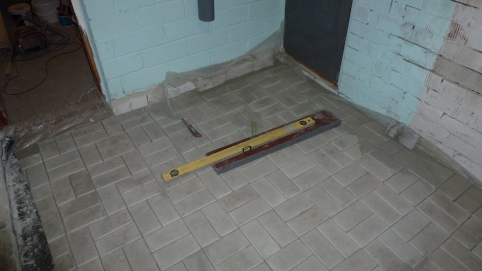 и сверху укладываю тротуарную плитку 3см. По краям, пустоты заполняю плиточным клеем.