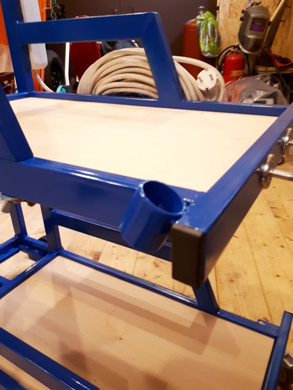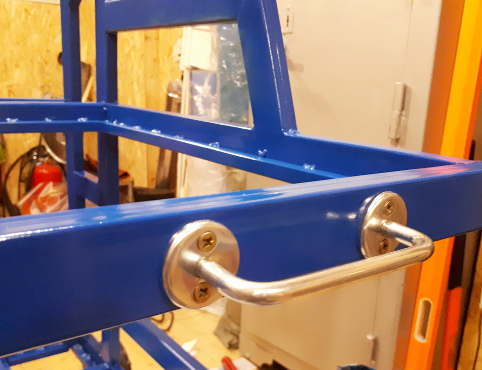 Все сварочные швы необходимо зачистить и обезжирить, а поверхность тележки покрасить порошковой эмалью