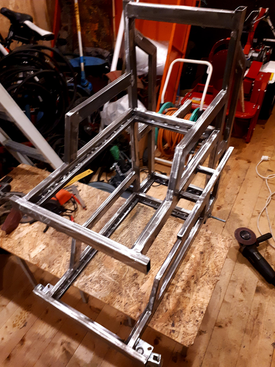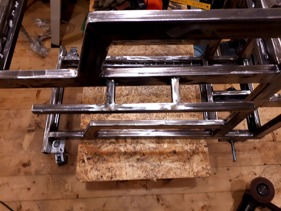 После этого все детали тщательно вымеряют, нарезают и при необходимости шлифуют. Затем начинается сам процесс сварки, который желательно начать с каркаса, чтобы обеспечить прочность всей конструкции. После того как каркас готов, можно спокойно заняться полками, колесами и прочим наполнением.