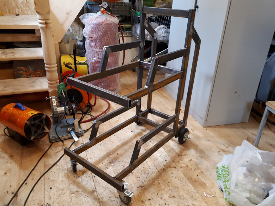 Итог нужна была тележка универсальная, чтобы в случае чего можно было возить ее в машине, не очень много места занимала в гараже и просто мобильная набрал обрезков с уголка и понеслось и вот, что вышло .