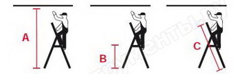 Существует несколько параметров выбора высоты лестниц, поэтому часто многие покупатели их путают и приобретают не совсем то, что хотели. Чтобы с Вами такого не произошло, нужно детально разобраться, что подразумевается под понятием «высота». Различают высоту лестницы и рабочую высоту (в характеристиках производитель может указывать один из параметров или оба).