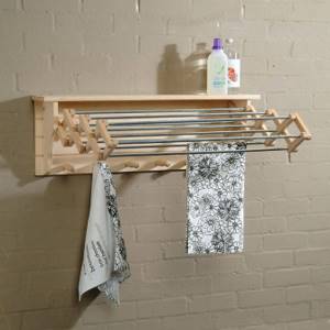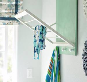 Отлично себя зарекомендовали деревянные складные «гармошки», подвесные потолочные сушилки или откидные приспособления, вмонтированные в стену.