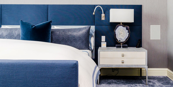 Дизайнеры Елена Иванова и Марина Пограницкая предпочитают использовать синий и его оттенки в оформлении спален, так как этот цвет способствует расслаблению и отдыху. Однако, советуют применять его акцентно, чтобы пространство не выглядело слишком холодным.