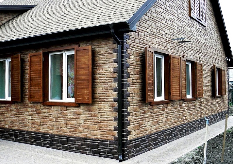 Поэтому чаще всего цокольные панели используют только для отделки фундамента, а фасад отделывают обычным сайдингом.