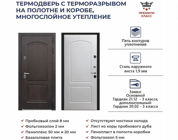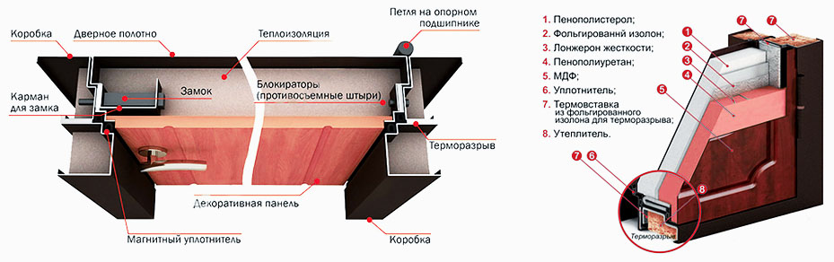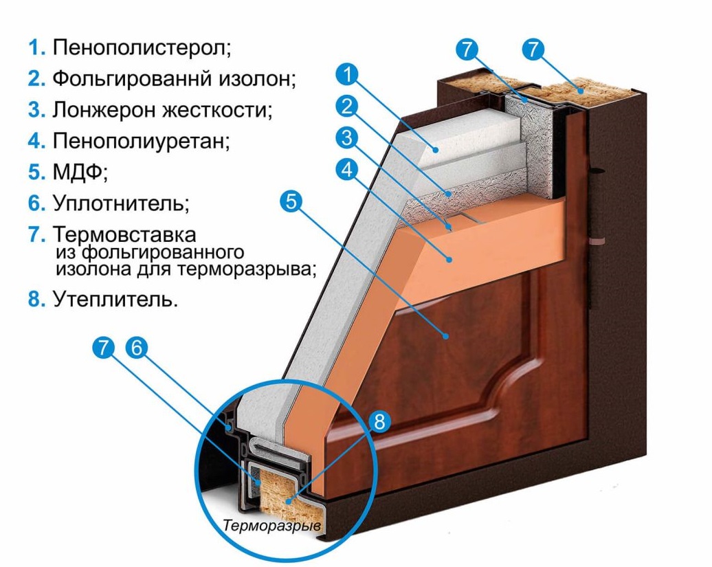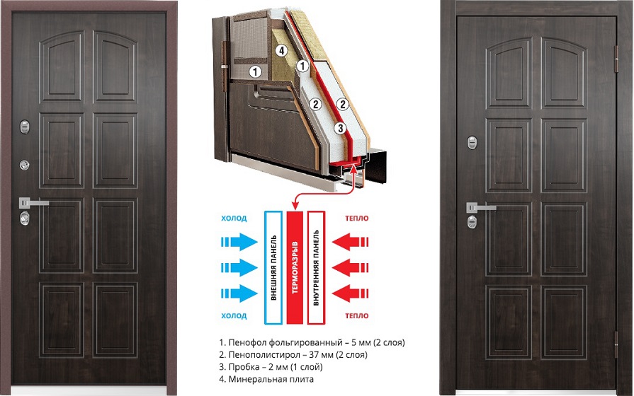 Материалы изготовления металлических входных уличных утеплённых дверей с терморазрывом