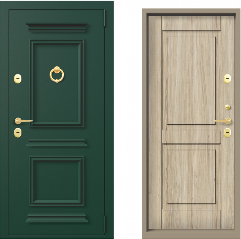 - Внешняя сторона изготовлена из холоднокатаного металла. Покрытие выполнено следующими материалами — антикоррозийным, цинкосодержащим грунтом и полимерной краской RAL 6005.