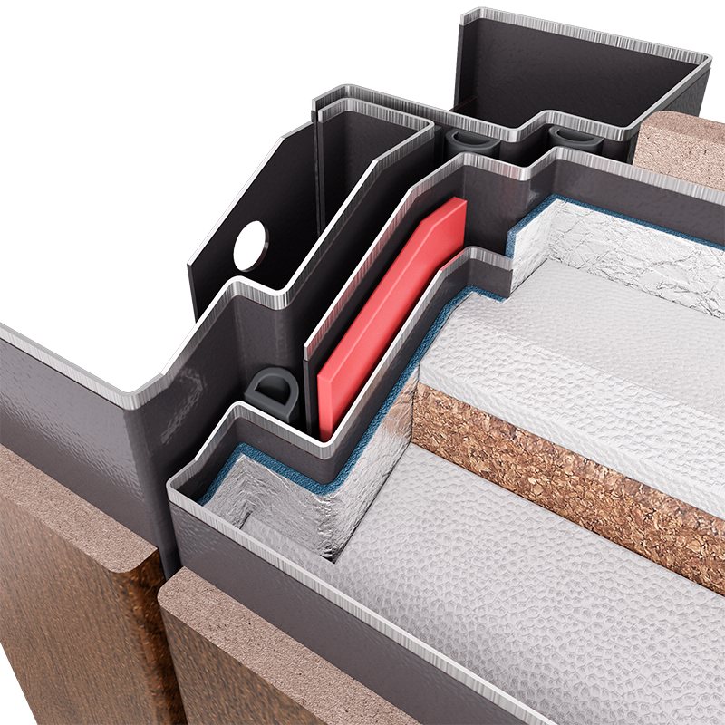 Терморазрыв предотвращает перегрев или переохлаждение двери, создавая комфортную температуру в помещении даже при переохлаждении или перегреве. Терморазрыв монтируется по всему периметру двери.