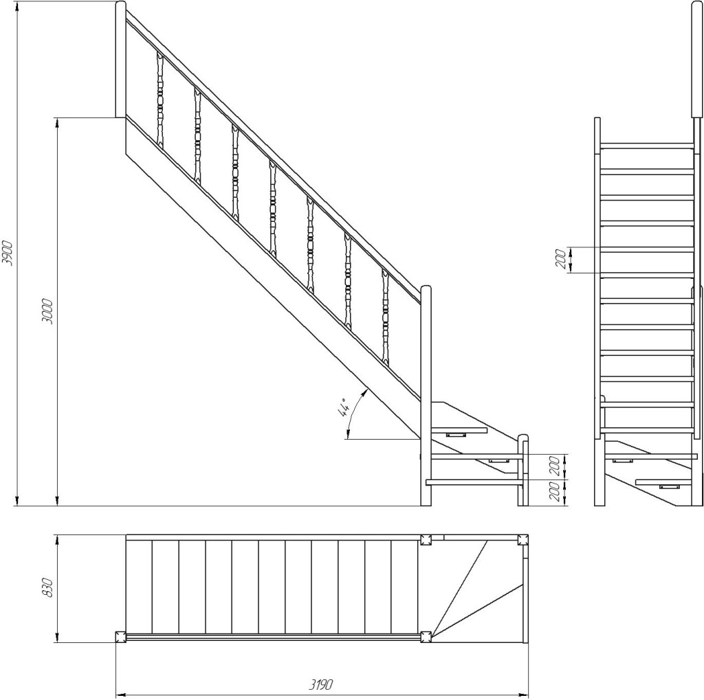 Ширина лестницы обычно берется стандартной или уменьшается/увеличивается исходя из ваших предпочтений и комфорта перемещения на ней.