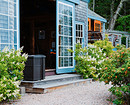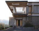 - Для домов с панорамным остеклением больше всего подойдут стеклянные двери, а для срубов — деревянные.