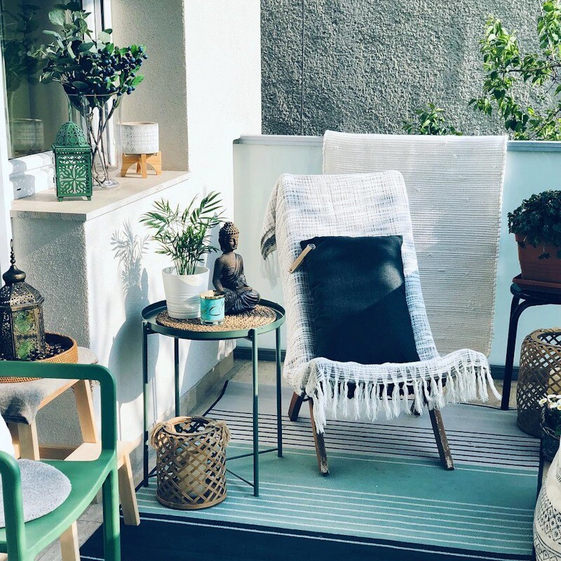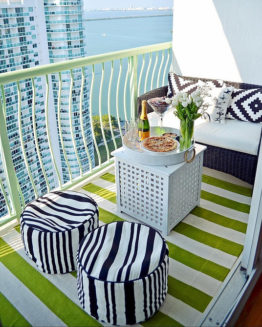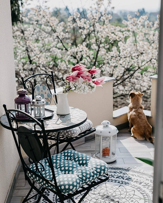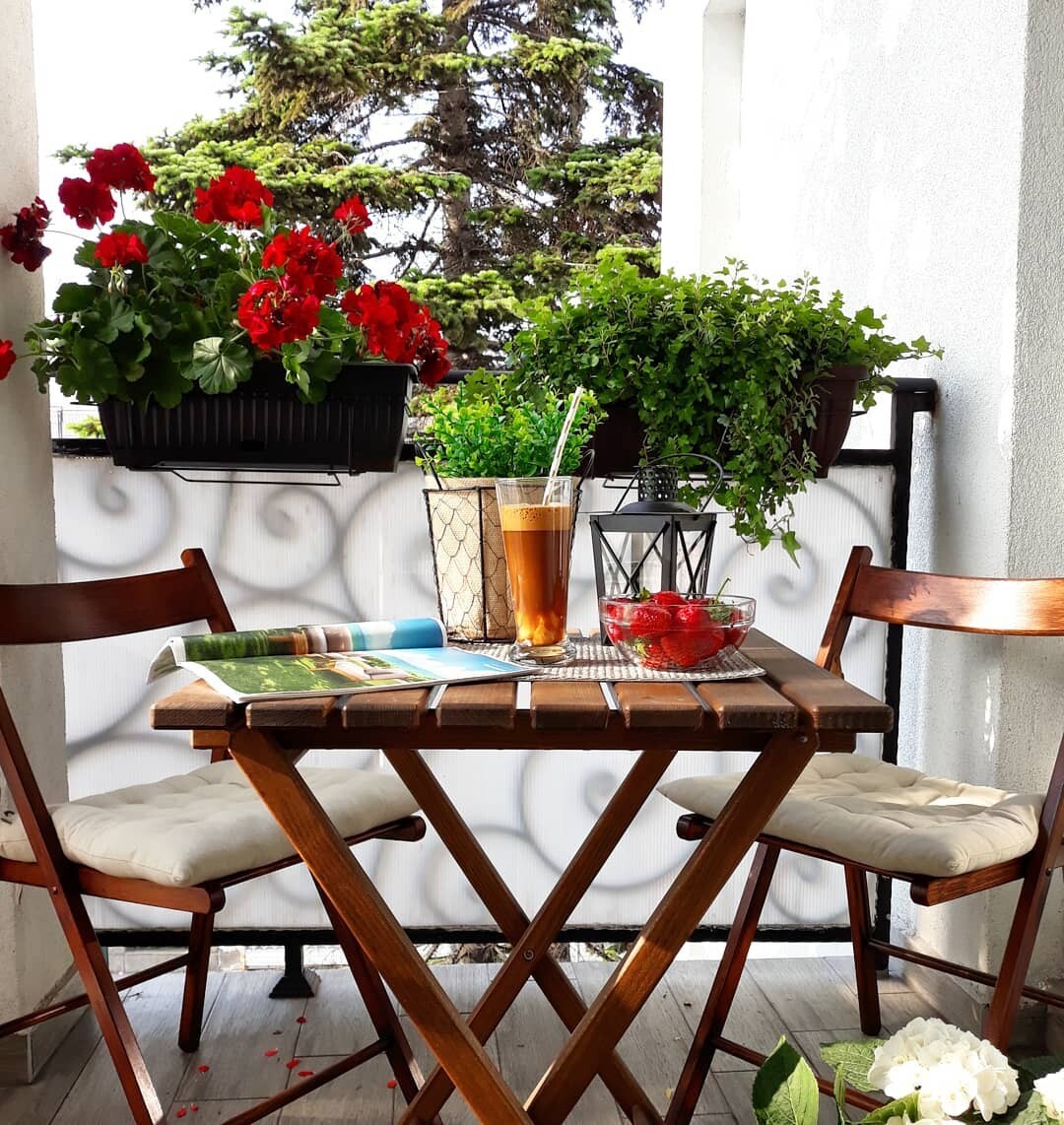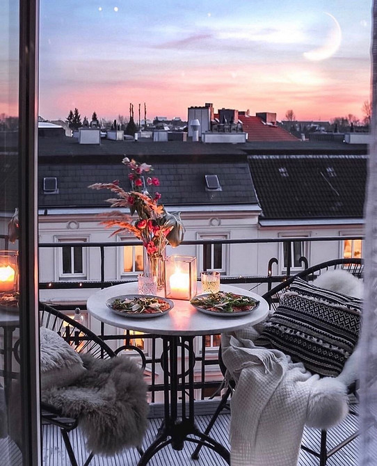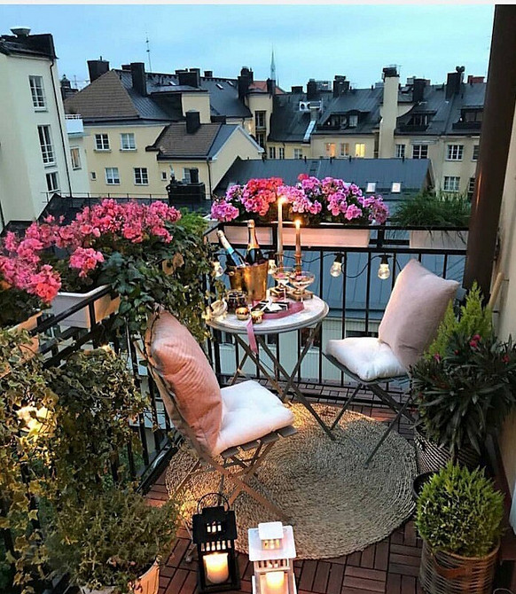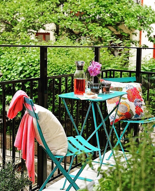 - чтобы пить кофе по утрам или наслаждаться видом ночного города с чашкой чая, достаточно пары плетеных или складных стульчиков;