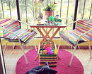 - Яркие подушки и пледы на стульях и креслах будут как нельзя кстати — не придется заходить в дом, даже если на улице похолодает.