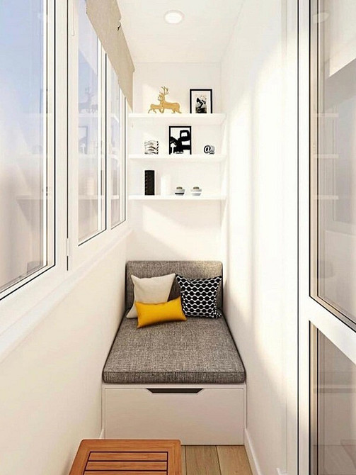 Главная задача в отделке маленького балкона — сделать его просторнее, хотя бы визуально. Если зрительного увеличения площади недостаточно, измените планировку квартиры и присоедините лоджию к комнате. Однако, так вы потеряете дополнительную, пусть и крохотную, комнатку. К тому же, стоимость работы и материалов выйдет не маленькой.