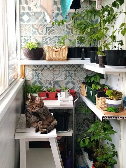 - На столе, подоконнике, стеллаже, пустых полках удобно разместятся кашпо с цветами. В теплое время года на балконе им будет комфортно.